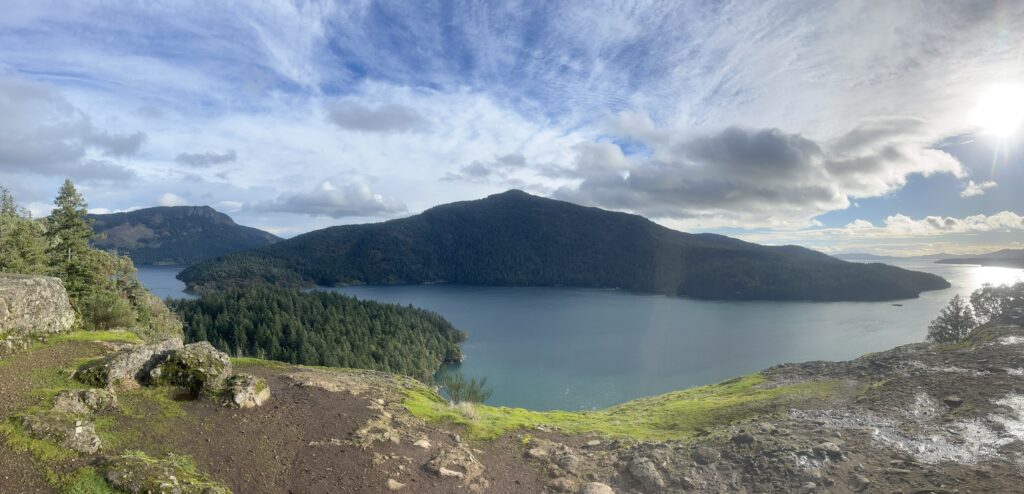 There is some elevation change, but nothing too steep—just enough to keep things interesting. The loop brings you through forested sections and out to cliffs with breathtaking views over the Sansum Narrows and Salt Spring Island.